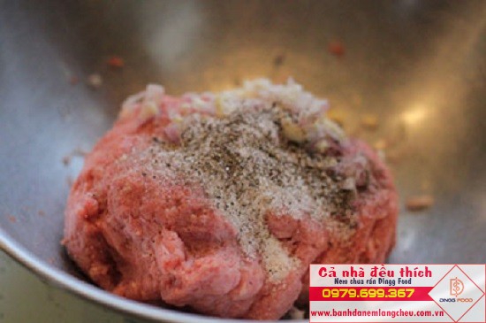 – Tiếp theo, chúng ta sẽ trộn thịt nạc xay với một thìa nước mắm, 1 thìa thính, 1 thìa cà phê bột nêm, tỏi, 1 thìa bột năng, 1 thìa đường. Sau đó, trộn đều hỗn hợp thịt cùng gia vị rồi cho thêm một chút tiêu xay vào để món nem chua rán được thơm hơn. Khi đã trộn xong, để hỗn hợp vào hộp nhựa, đậy kín rồi cho vào ngăn đá tủ lạnh khoảng 2 tiếng.